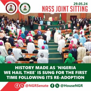 The Joint Sitting of the National Assembly was marked by a sense of patriotism and renewed hope, as legislators and dignitaries joined in the historic rendition of the anthem. An event that not only commemorates the past, but also sets the tone for a united and progressive Nigeria.