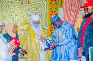 The Emir of Zazzau, Ambassador Ahmed Nuhu Bamalli, received the medical team led by the Deputy Chief of Staff (Administration) to the Speaker, Engr. Jamil Ahmad Muhammad, in his palace.